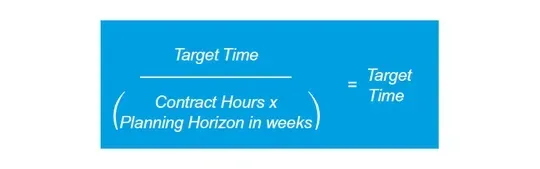 Next, we add a core absence multiple to available time to create the target time. The core absence multiple is based on holiday levels. If we take a standard offering within the United Kingdom of 8 public holidays and 25 days of holiday entitlement, the multiple is 0.145.