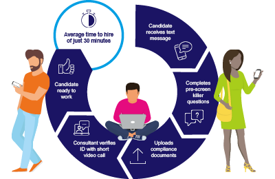 Time-to-hire can be as quick as 30 minutes, leading to higher conversion rates of applicants to placed workers, as 65% of applicants for temporary work expect to start work within 2 days of submitting their application.
